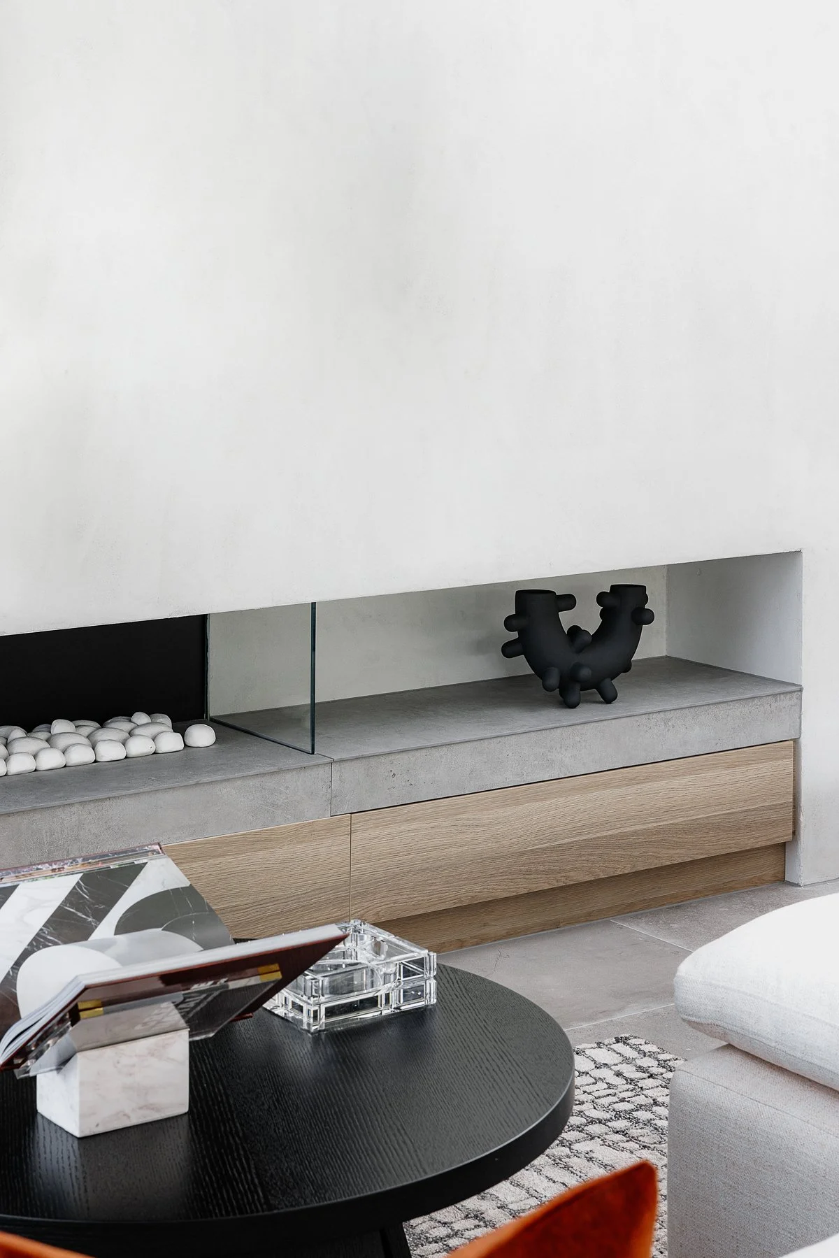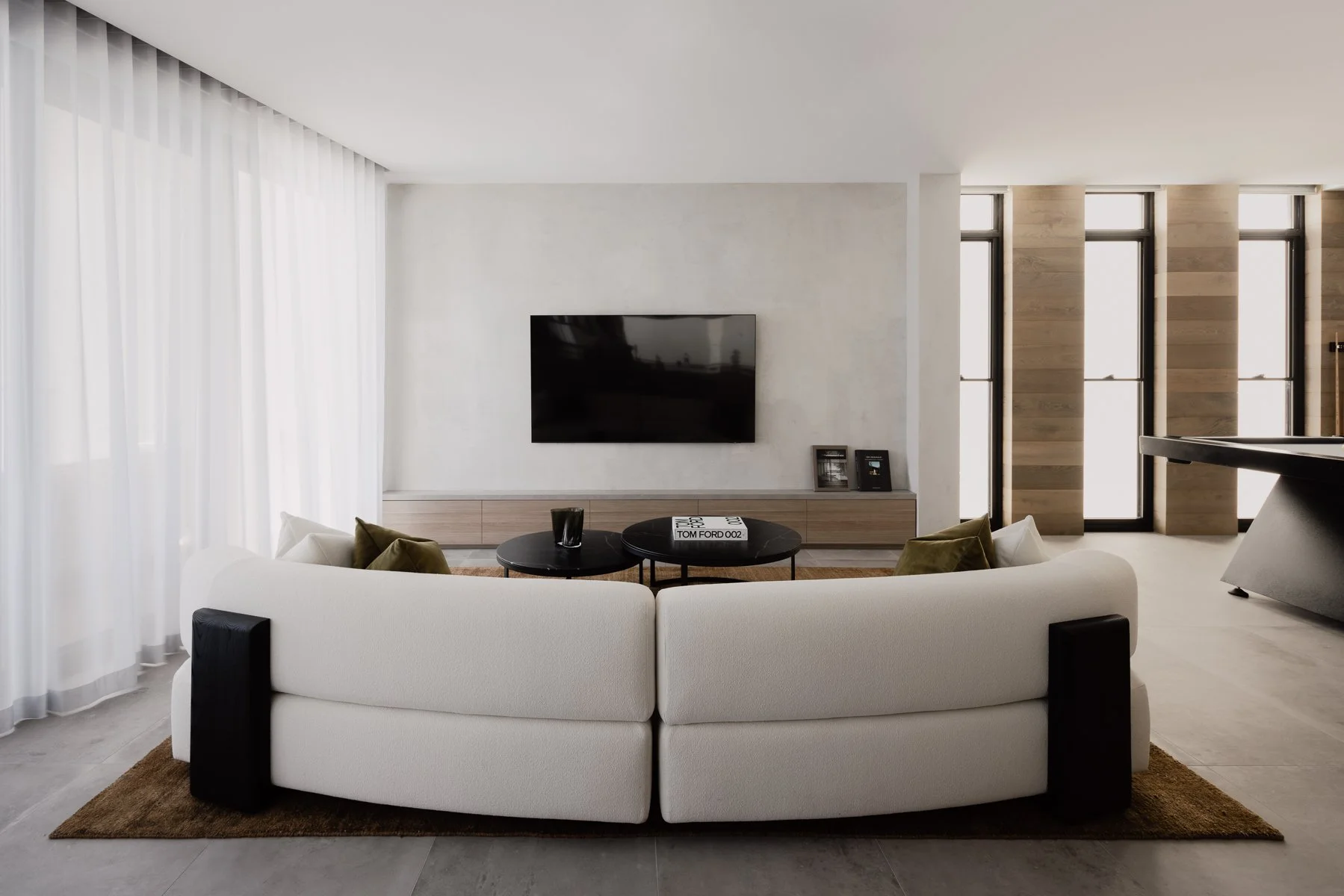 Residence Study was engaged by Di Carlo Property Group to provide internal furnishing assistance to pair with an existing architectural scheme. The main design focus was to incorporate contrast, texture and warmth to a raw, hard finish palette.
